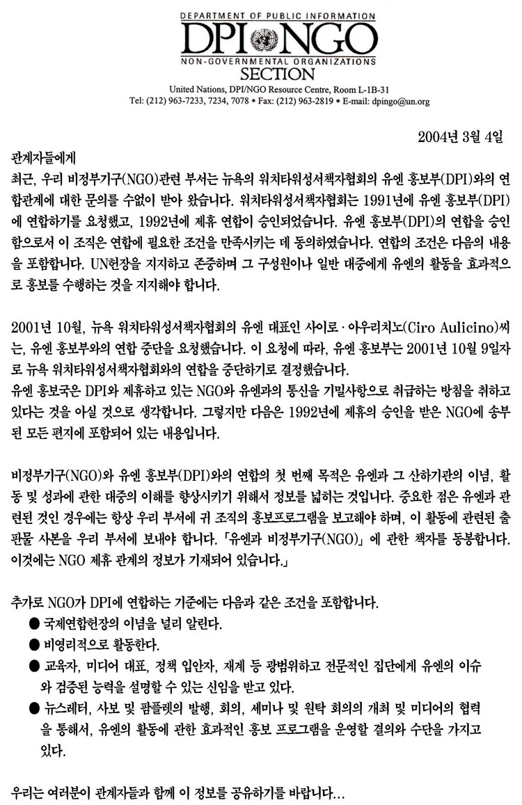 여호와의 증인이 UN NGO에 가입했었다는 UN의 공식 PDF자료
